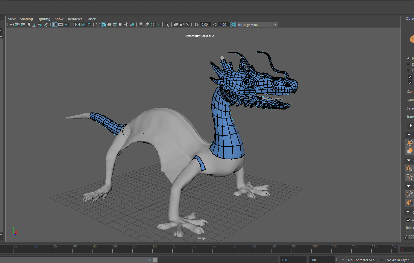 Work in Progress – Back when I first started organic modelling, I tried creating a combination of an Emerald Boa and a bat, to make a kind of dragon (pictured in green). More recently I’ve decided that I wanted to update the topology and texture. I still want to creature to maintain the same type of biology, but to be more aesthetically pleasing as well.